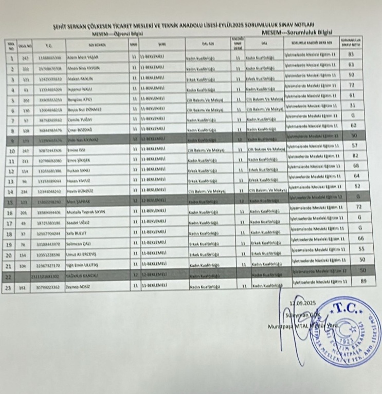 GÜZELLİK VE SAÇ HİZMETLERİ ALANI USTALIK VE KALFALIK SORUMLULUK SINAV SONUÇLARI